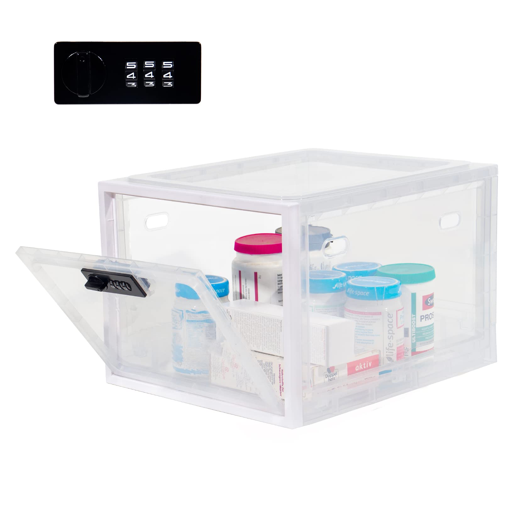 GREELUE Abschließbare Stapelboxen, Plastikbox mit Deckel, Medikamenten Aufbewahrung, Durchsichtige kisten für Süßigkeiten, Spielzeug und Bürobedarf (Weiß)
